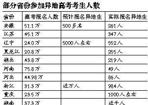 The data that the basis collects, 10 province such as Anhui, Liaoning were reported " different ground the university entrance exam " the number of the person that be benefited.
