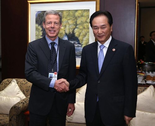 On June 7, cai Mingzhao of director of office of news of Chinese the State Council is interviewed in Chengdu attend 2013 Chengdu " fortune " the president of American age Wanner group of global forum holds presiding apparitor concurrently Bikesi. Pang Xinglei of reporter of Xinhua News Agency is photographed