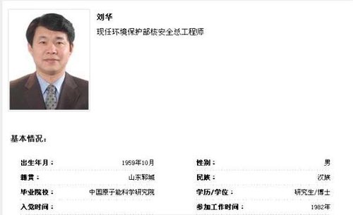 Original title: Chief engineer of nuclear safety of ministry of Liu Huaren environmental protection (graph / resume)