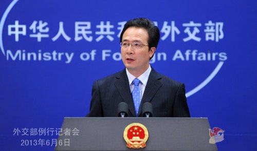 On June 6, 2013, The Ministry of Foreign AffairsSpokesman Hong Lei chairs routine press conference